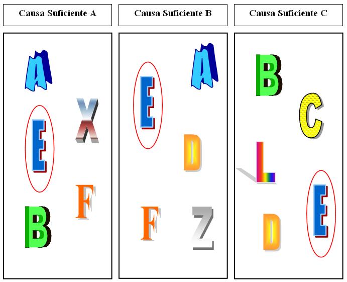 Cuadro: Causa suficiente A, causa suficiente B y causa suficiente C